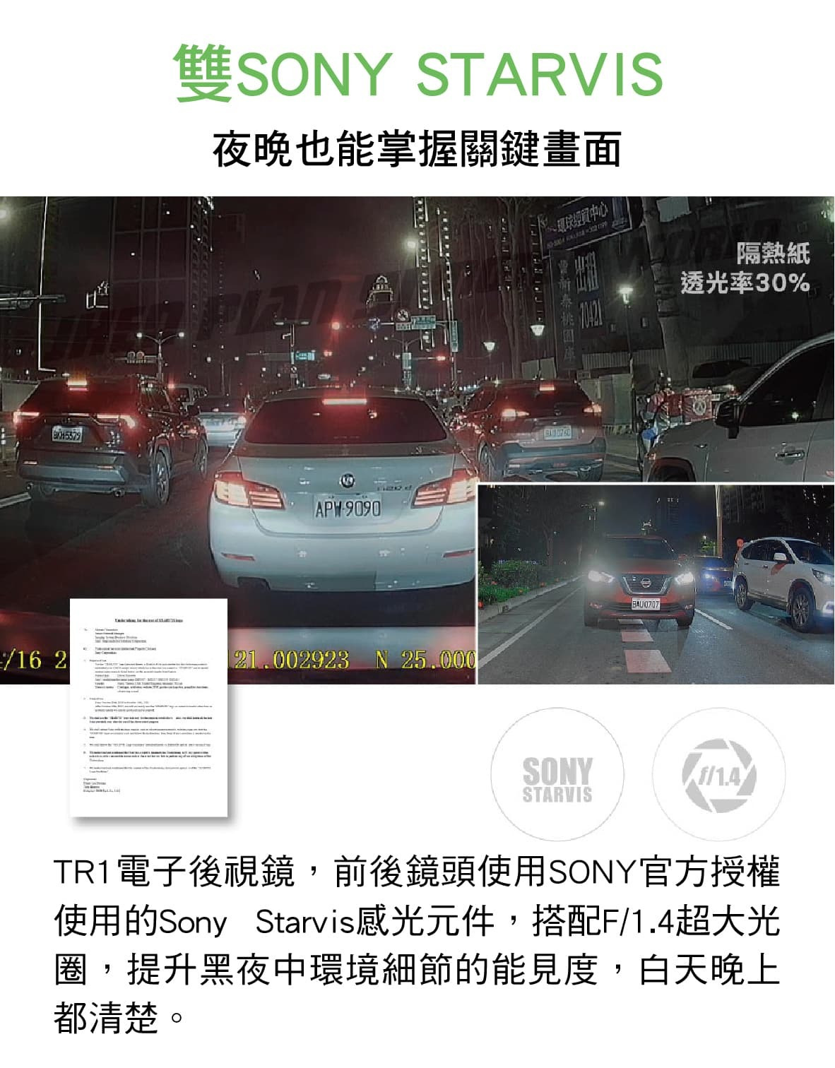 ◆ 前後鏡頭使用SONY官方授權使用的Sony Starvis感光元件